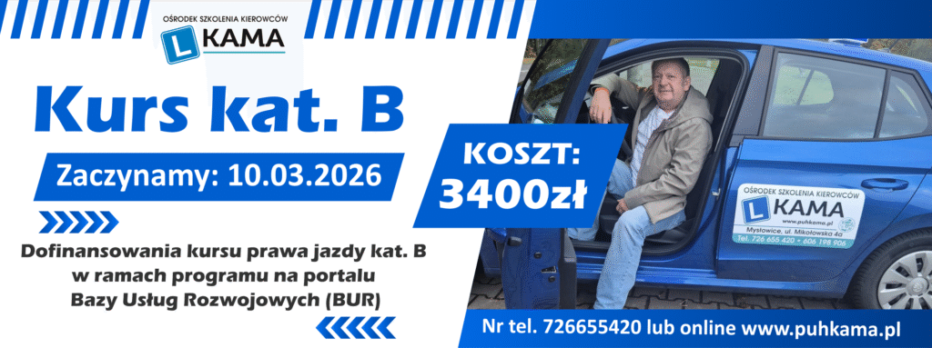 - Znajdź kurs w OSK KAMA, np. kurs prawa jazdy kat. B od 18 lat.